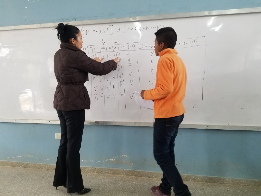 Llegué al instituto a las 8:30 a.m, comencé la clase pasando lista de asistencia y luego le revise las guías de trabajo y luego discutimos los ejercicios, hicimos unos ejercicios nuevos en la pizarra por qué algunos tenían dificultades con las tablas de 3 proposiciones.