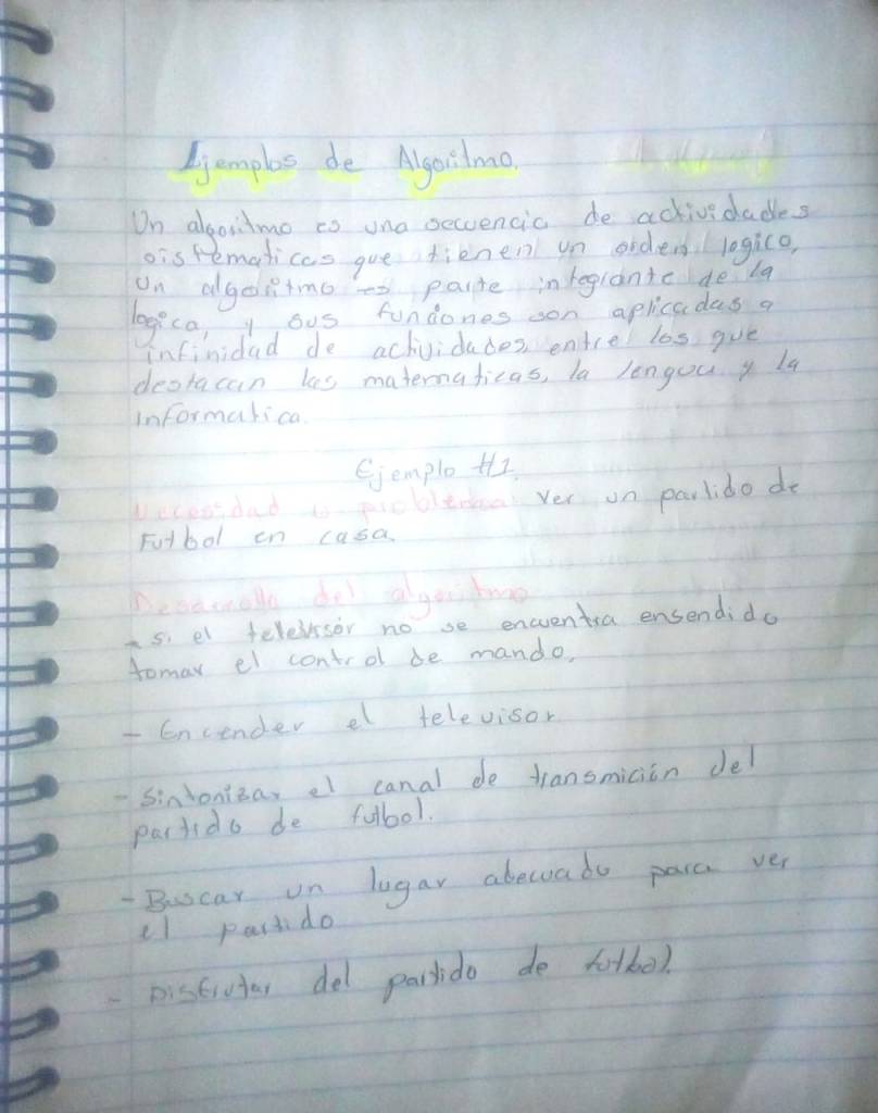 Continuamos con las clases virtuales específicamente vía WhatsApp, la tarea de esta semana la asignación de esta semana es desarrollar seis ejemplos de algoritmos.