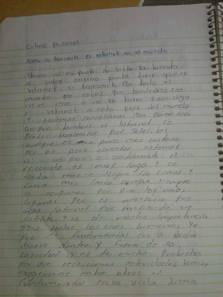 La verdad fue de gran aprendizaje para ellos ya que ellos pensaban que teníamos internet sólo por los satélites.