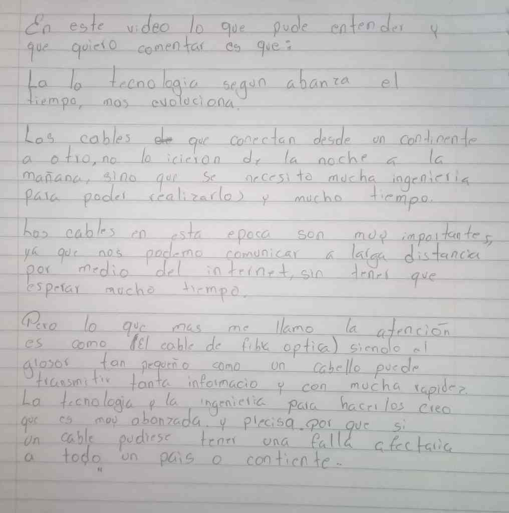 Continuando con las clases en línea los jóvenes hicieron un comentario propio de un video que les compartí de cómo funciona el internet.